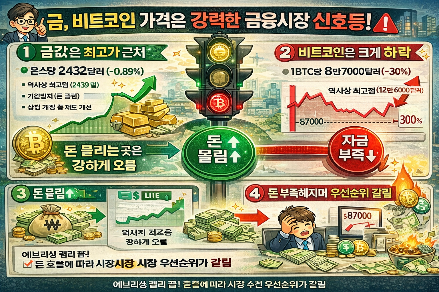 단기자금 흐름이 만들어낸 금과 비트코인의 엇갈린 운명