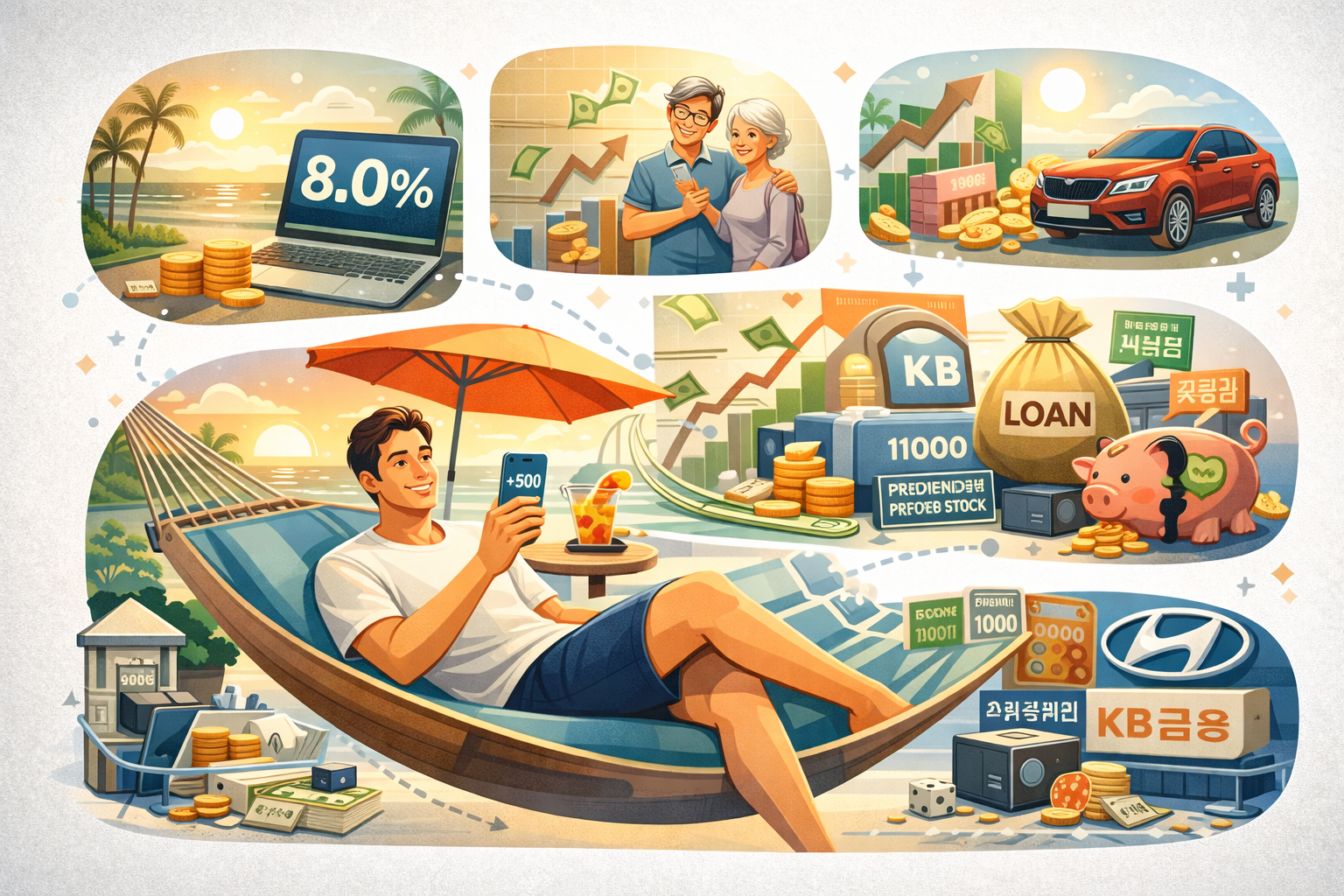다행히 그 시기를 버텨냈고, 2023년부터 투자 방향이 본격적으로 바뀌기 시작합니다. 현대차와 은행주들이 반기 배당에서 분기 배당으로 전환하면서 1년에 네 번 배당금을 수령할 수 있는 구조가 만들어졌기 때문입니다. 분기 배당이란 1년 치 배당금을 4분기에 나눠서 지급하는 방식으로, 투자자 입장에서는 현금 흐름이 훨씬 안정적으로 느껴집니다. 이 시점부터 '배당으로 생활한다'는 그림이 실제로 그려지기 시작했습니다.